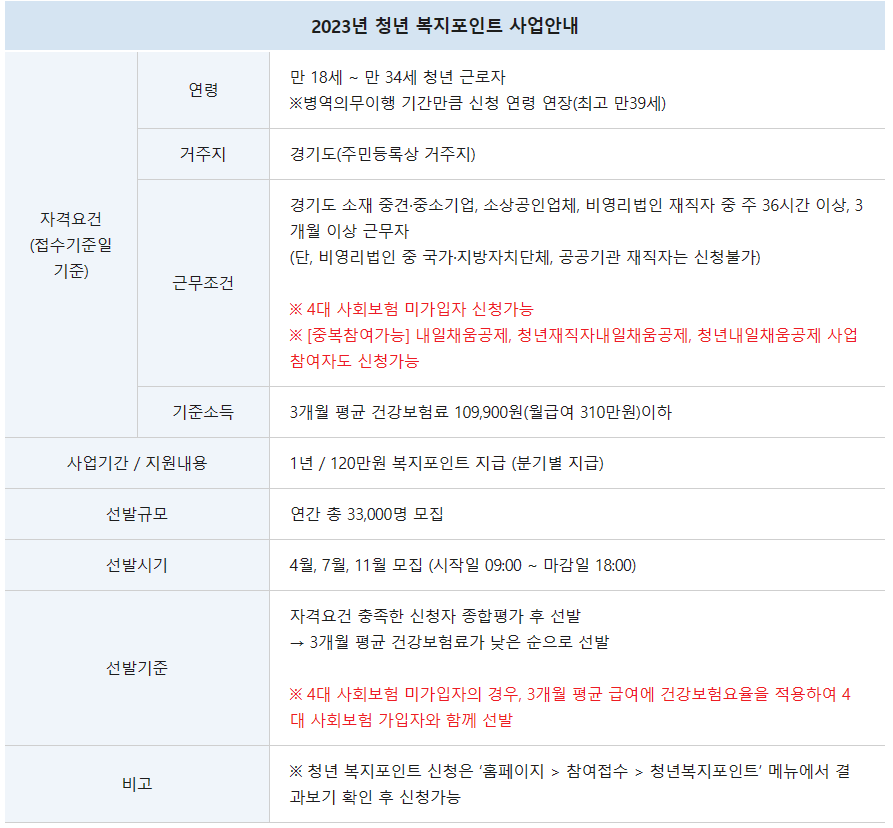 ▶청년 복지포인트 접수기간